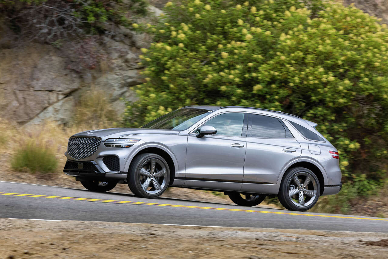 The Genesis GV70 is a small five-seat SUV that's big on style and content. Having made its debut for the 2022 model year, this first-generation GV70 looks sharp and gets down the road quickly thanks to its choice of a 300-horsepower four-cylinder engine or an available 375-horsepower V6. The V6, in particular, provides the GV70 with impressive acceleration for merging onto the highway or passing slower vehicles. All GV70s feature an attractive cabin, numerous standard features, and a spacious cargo area.